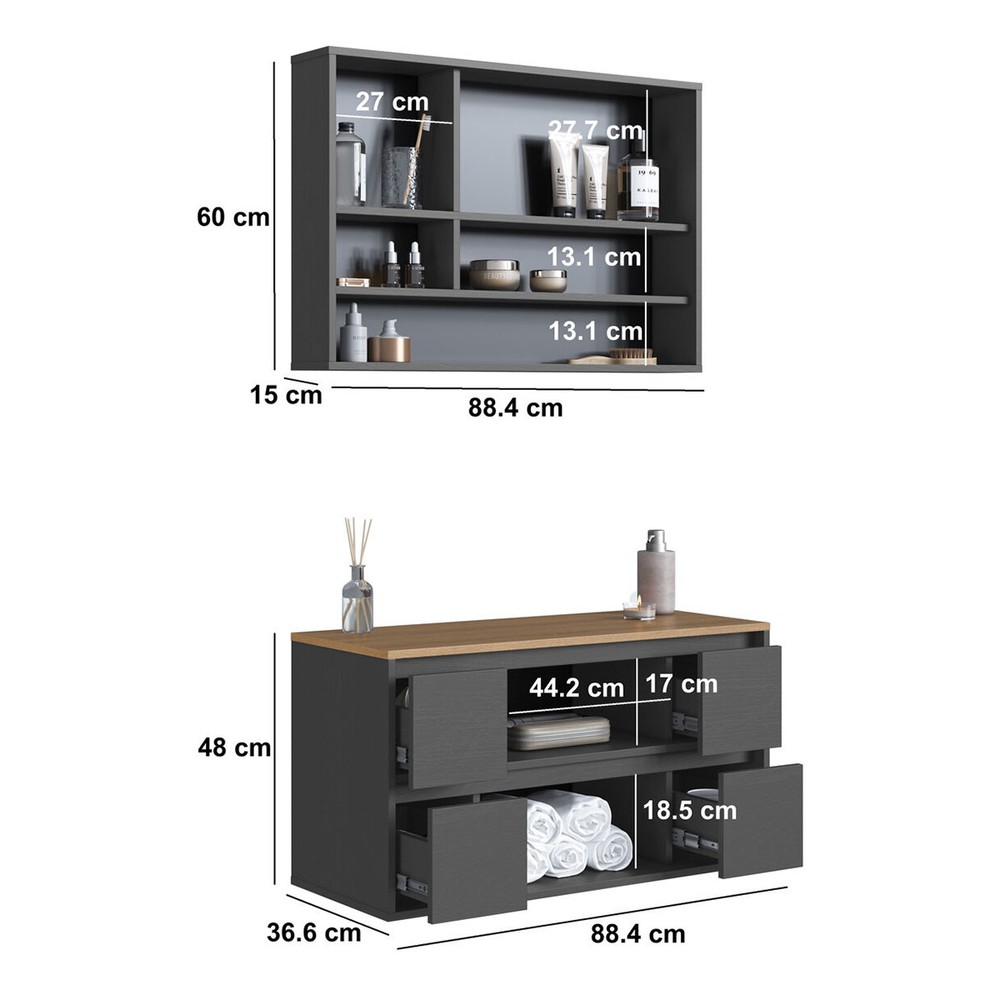 Armário de Banheiro Berlim 5 Portas 4 Gavetas com Espelho Grafite - Art In Móveis