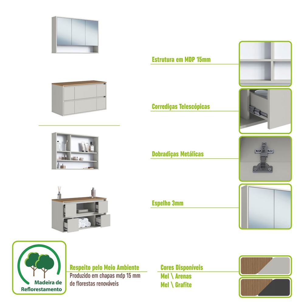 O(a) Armário de Banheiro Berlim 5 Portas 4 Gavetas com Espelho Grafite - Art In Móveis é produzido em MDP na escala de brilho Fosco, e possui um grau de dificuldade de montagem: Médio.
