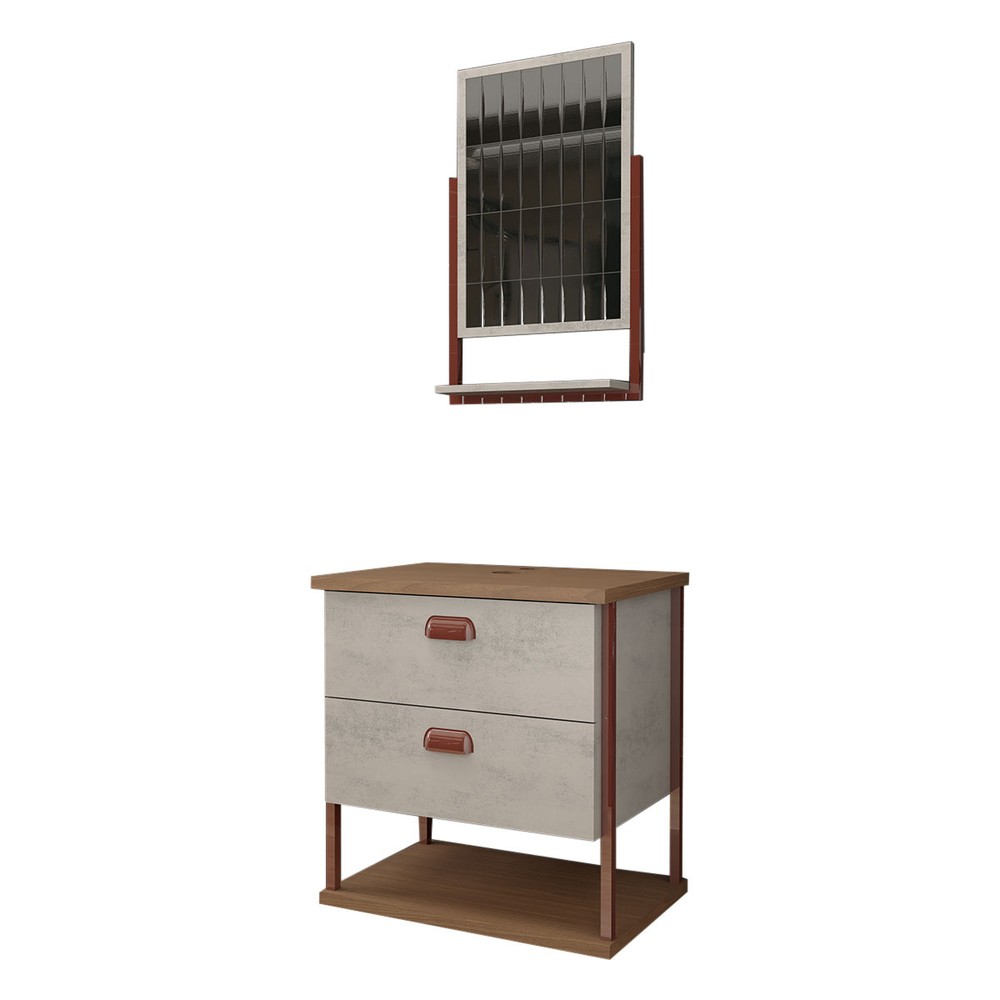 O(a) Armário de Banheiro Cielo 60cm 2 Gavetas C/ Espelheira 100% Mdf Cimento/Freijó - Panorama Móveis é produzido em 100% MDF na escala de brilho Semi-Brilho, e possui um grau de dificuldade de montagem: Médio.