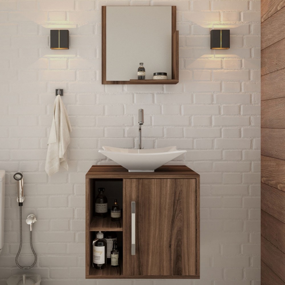 O(a) Armário de Banheiro com Cuba e Espelho Soft 1 Porta Nogal 13684 - Compace é produzido em MDP na escala de brilho Fosco, e possui um grau de dificuldade de montagem: Médio.