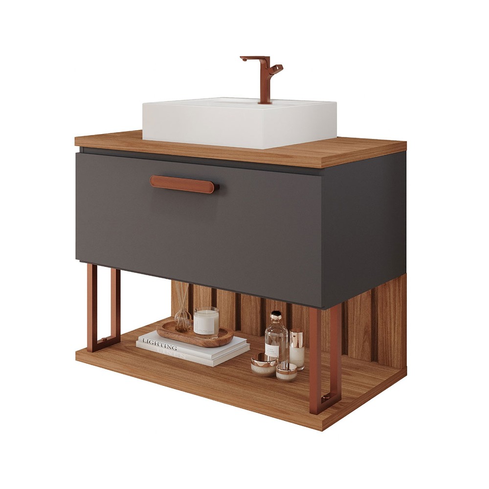 Armário de Banheiro Duna 80 Cm 1 Porta 100% Mdf Titanium/Freijó - Mgm Móveis