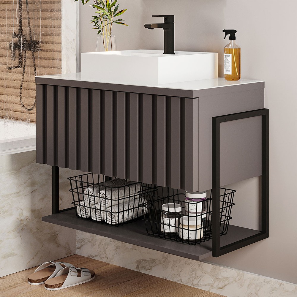 Armário de Banheiro Frise 60cm 1 Porta 100% Mdf Titanium - Mgm Móveis