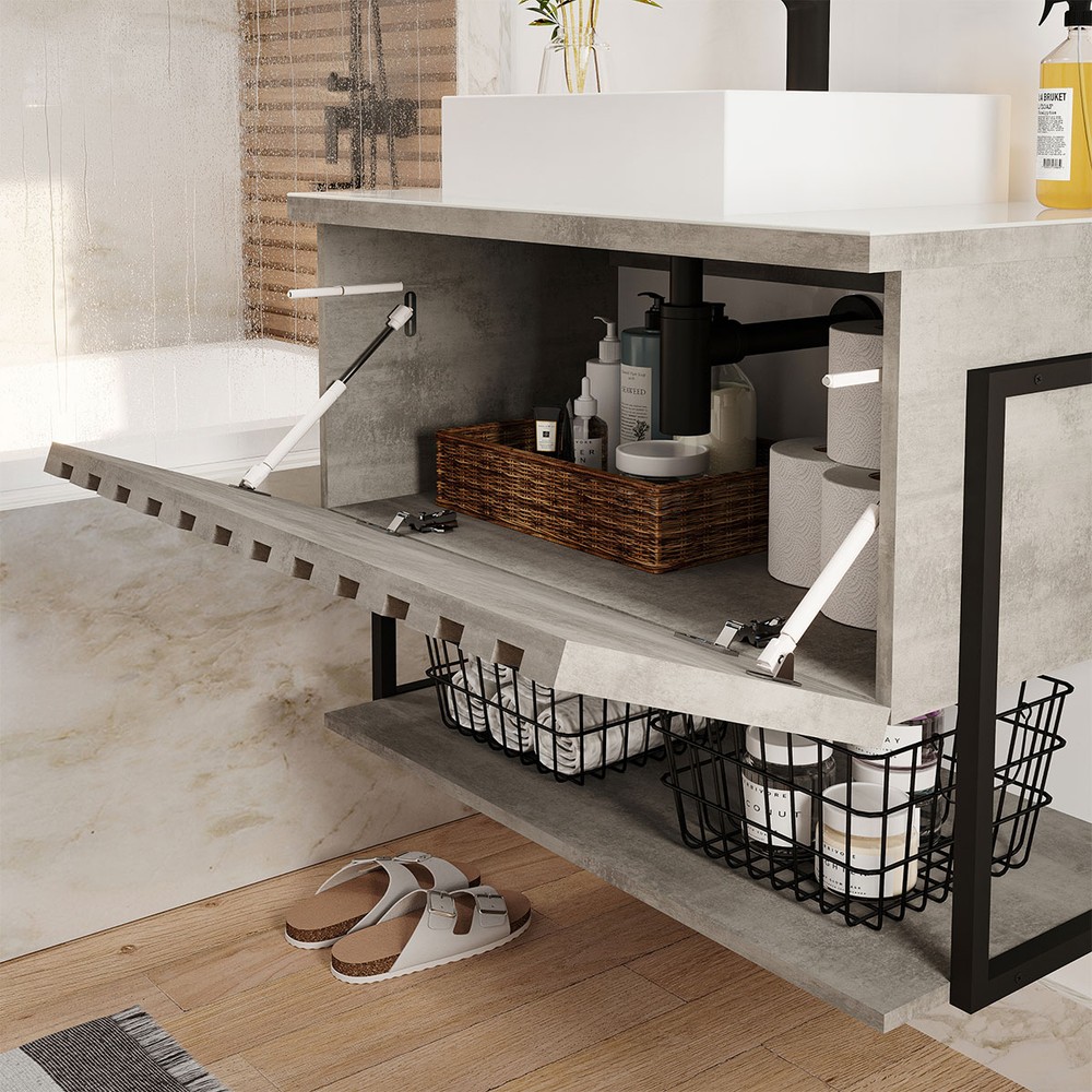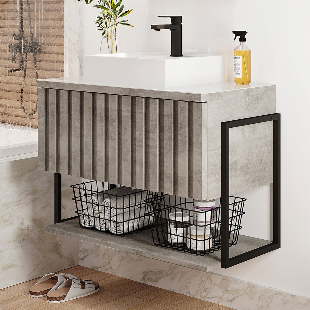 Armário de Banheiro Frise 80cm 1 Porta 100% Mdf Cimento - Mgm Móveis