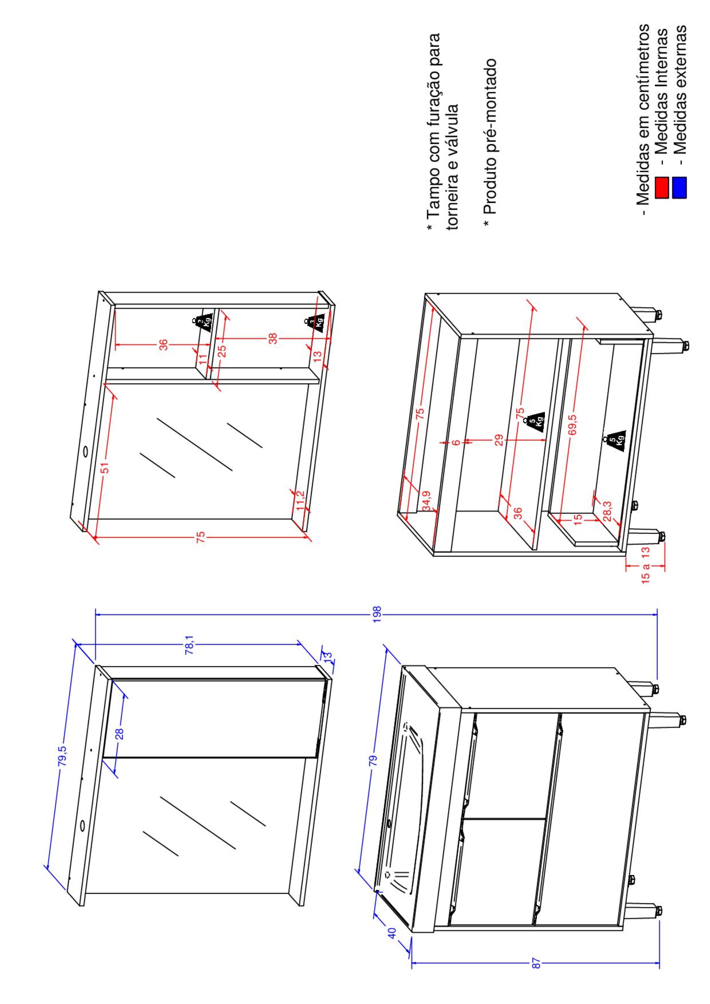 Peso Suportado nas Gavetas (Kg) 5 Kg