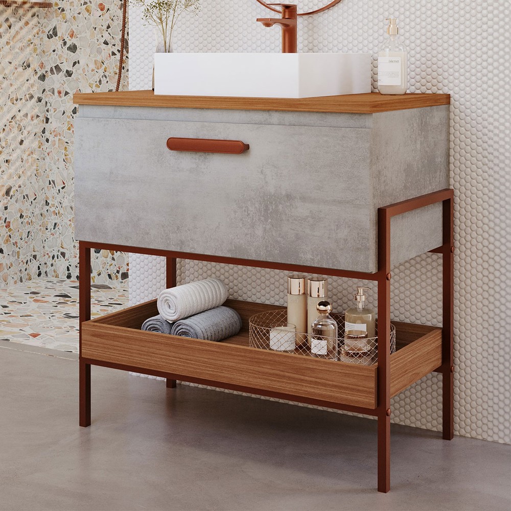 O(a) Armário de Banheiro Portinari 80cm 1 Porta 100% Mdf Cimento/Freijó - Mgm Móveis é produzido em 100% MDF na escala de brilho Semi-Brilho, e possui um grau de dificuldade de montagem: Médio.