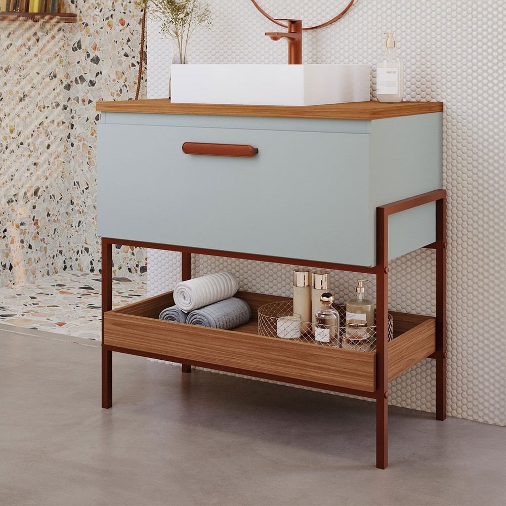 Armário de Banheiro Portinari 80cm 1 Porta 100% Mdf Pistache/Freijó - Mgm Móveis