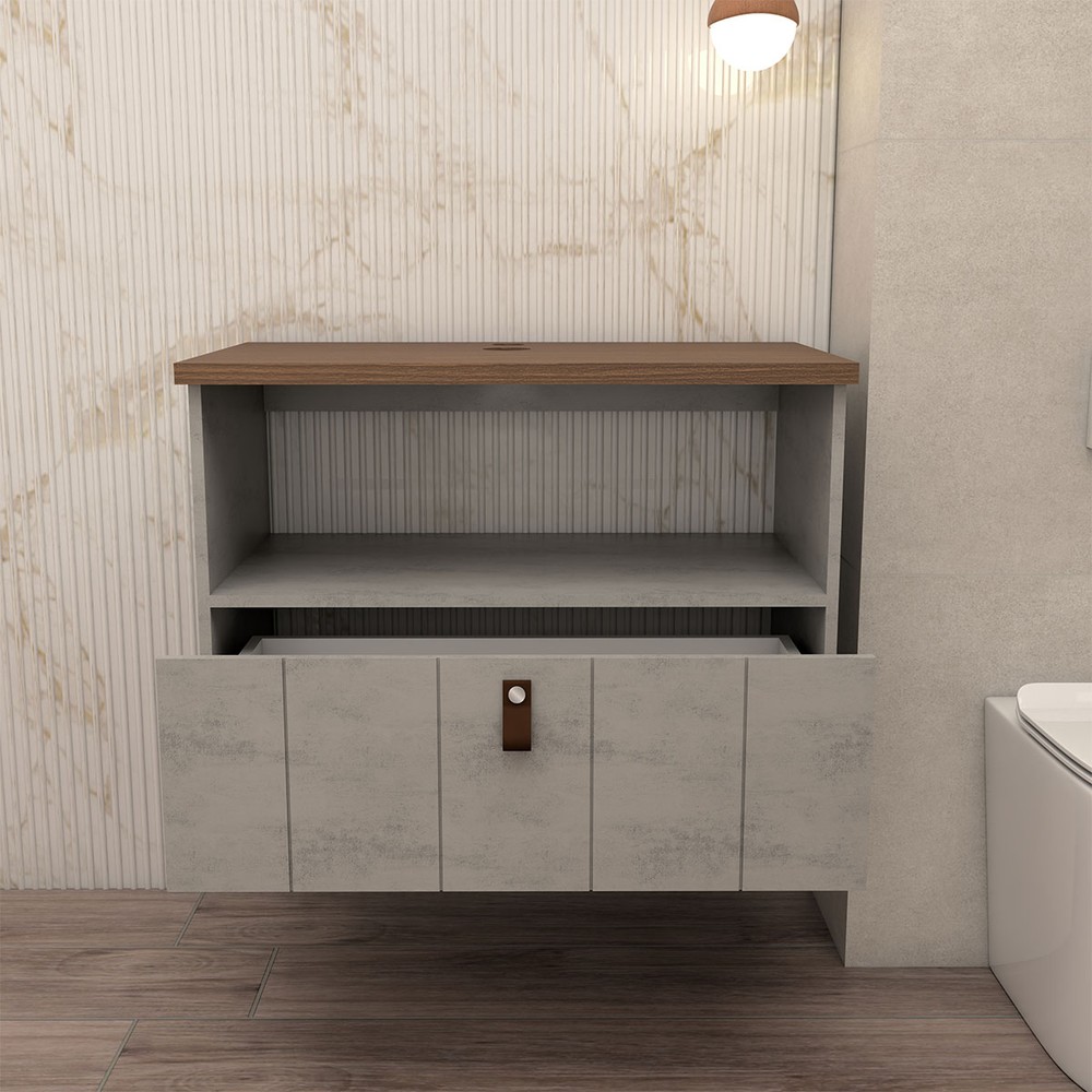O(a) Armário de Banheiro Sierra 80cm 1 Porta e 1 Gaveta 100% Mdf Cimento/Freijó - Panorama Móveis é produzido em 100% MDF na escala de brilho Semi-Brilho, e possui um grau de dificuldade de montagem: Médio.