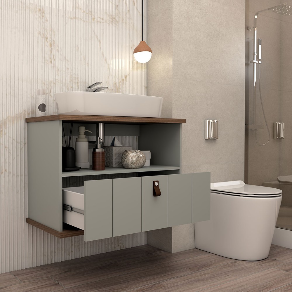 O(a) Armário de Banheiro Sierra 80cm 1 Porta e 1 Gaveta 100% Mdf Pistache/Freijó - Panorama Móveis é produzido em 100% MDF na escala de brilho Semi-Brilho, e possui um grau de dificuldade de montagem: Médio.