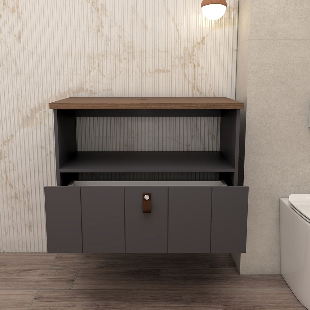 O(a) Armário de Banheiro Sierra 80cm 1 Porta e 1 Gaveta 100% Mdf Titanium/Freijó - Panorama Móveis é produzido em 100% MDF na escala de brilho Semi-Brilho, e possui um grau de dificuldade de montagem: Médio.