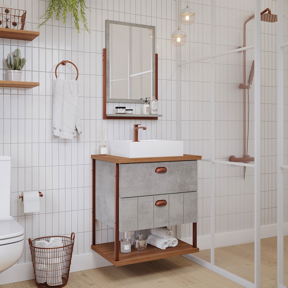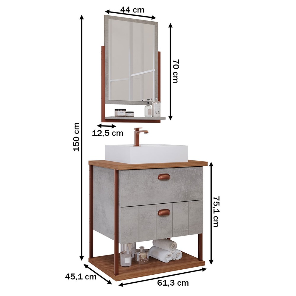 O(a) Armário de Banheiro Uni 60cm 2 Gavetas C/ Espelheira 100% Mdf Cimento/Freijó - Mgm Móveis é produzido em 100% MDF na escala de brilho Semi-Brilho, e possui um grau de dificuldade de montagem: Médio.