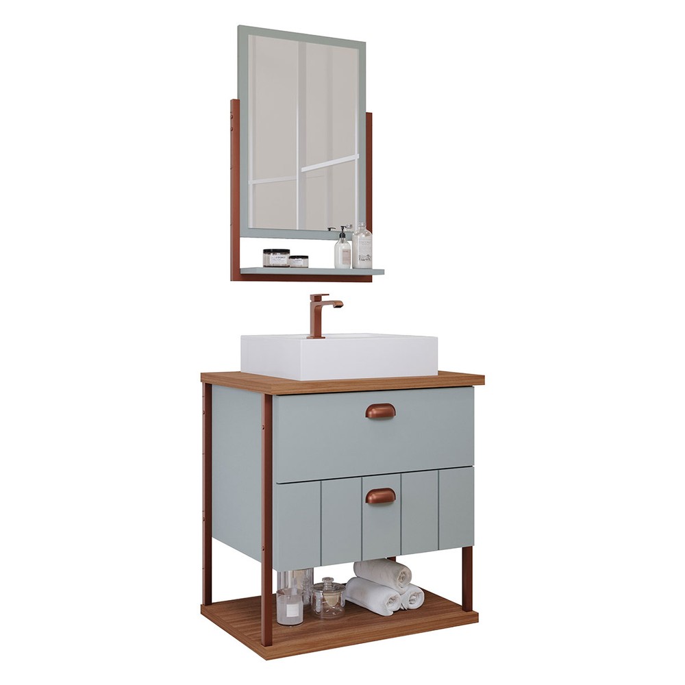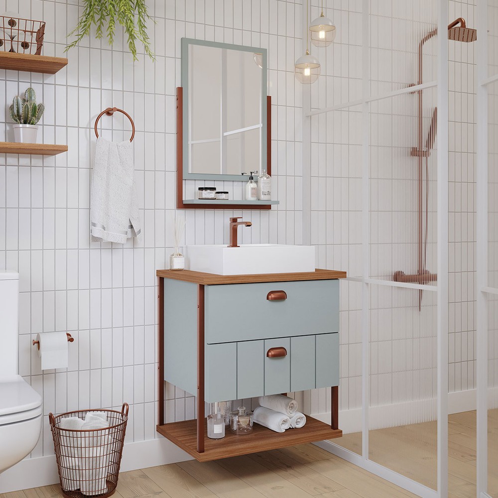 O(a) Armário de Banheiro Uni 60cm 2 Gavetas C/ Espelheira 100% Mdf Pistache/Freijó - Mgm Móveis é produzido em 100% MDF na escala de brilho Semi-Brilho, e possui um grau de dificuldade de montagem: Médio.