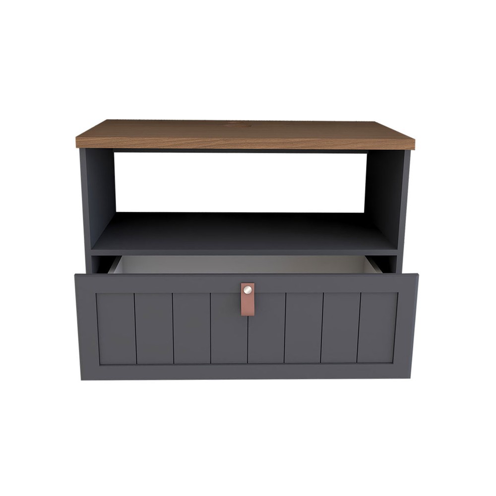 O(a) Armário de Banheiro Valencia 60 Cm 1 Porta e 1 Gaveta 100% Mdf Titanium/Freijó - Panorama Móveis é produzido em 100% MDF na escala de brilho Semi-Brilho, e possui um grau de dificuldade de montagem: Médio.