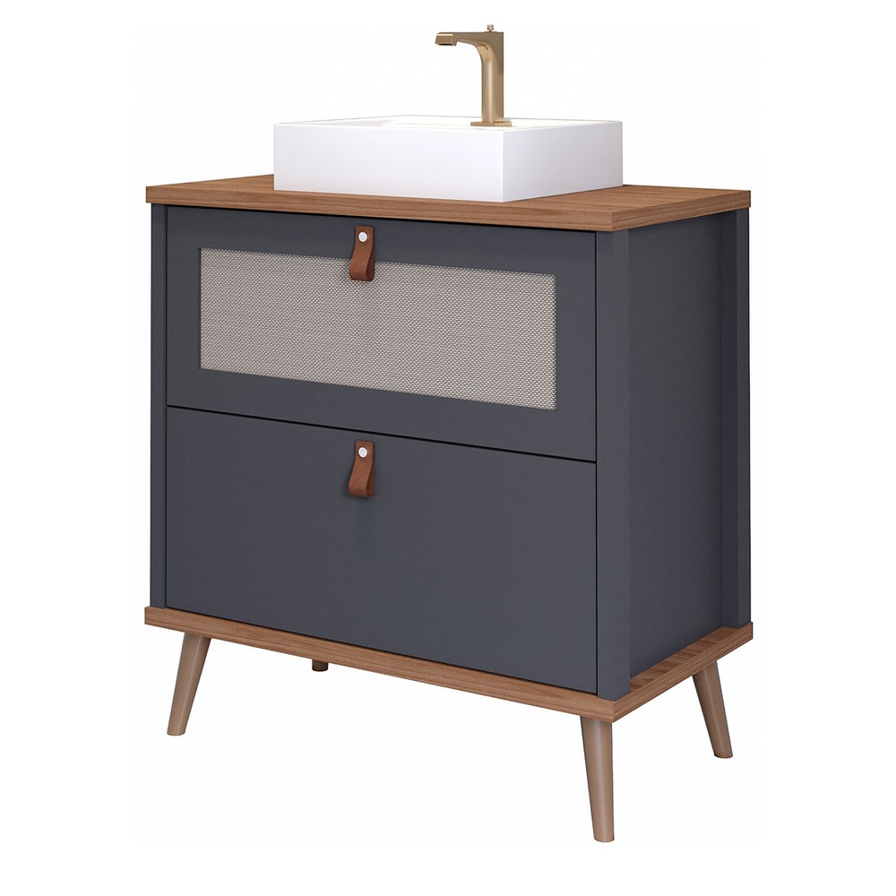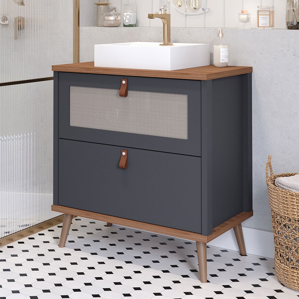 Armário de Banheiro Veneto 60 Cm 1 Porta e 1 Gaveta 100% Mdf Titanium/Freijó - Mgm Móveis