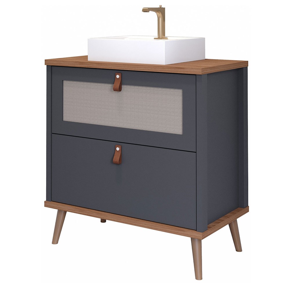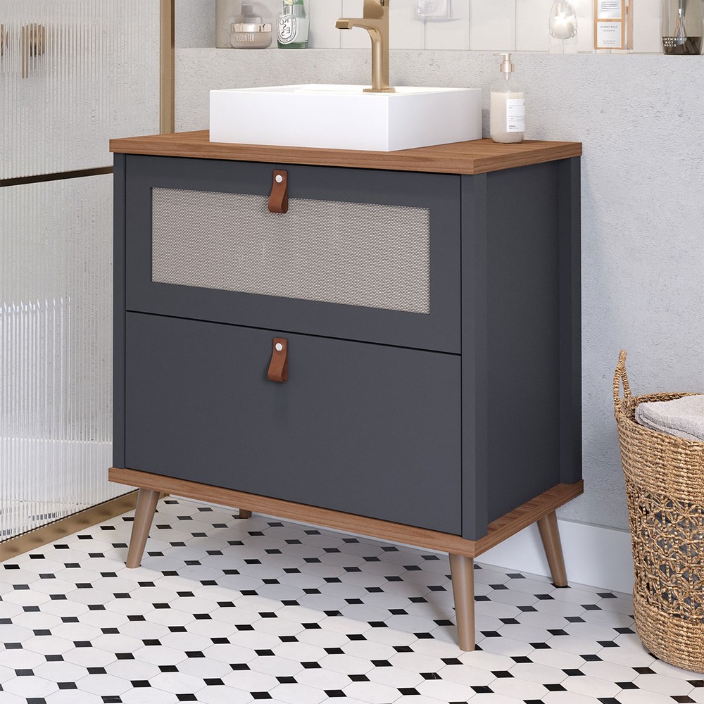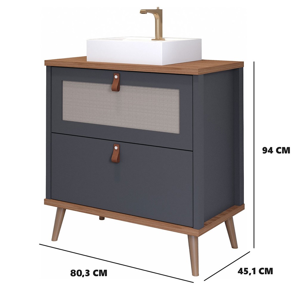 Armário de Banheiro Veneto 80cm 1 Porta e 1 Gaveta 100% Mdf Titanium/Freijó - Mgm Móveis