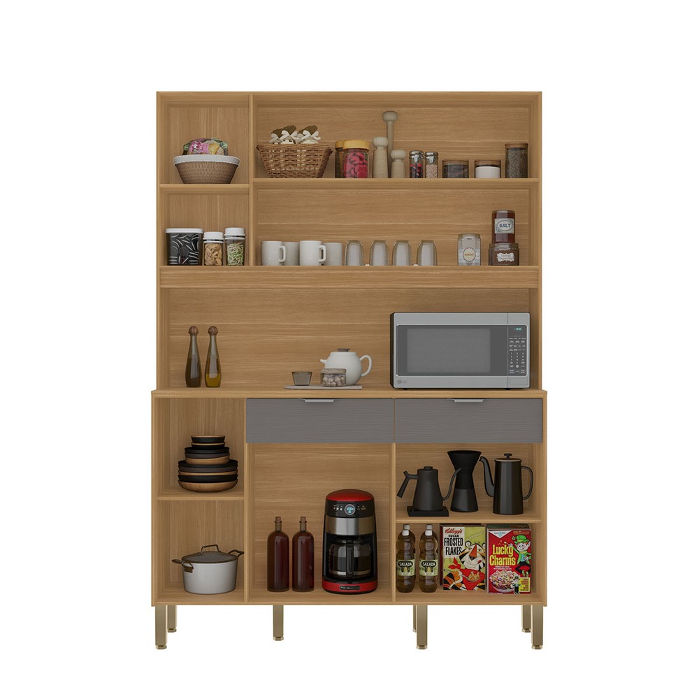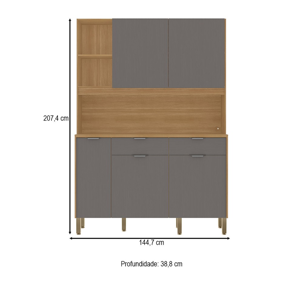Armário de Cozinha 144,7 Cm Flora 5 Portas 2 Gavetas Freijó/Gris - Kits Paraná
