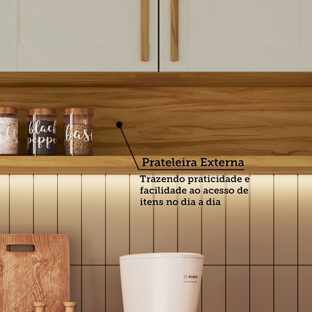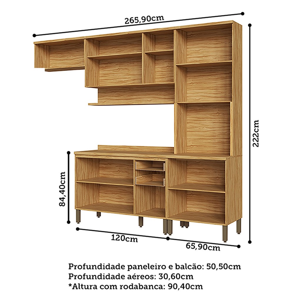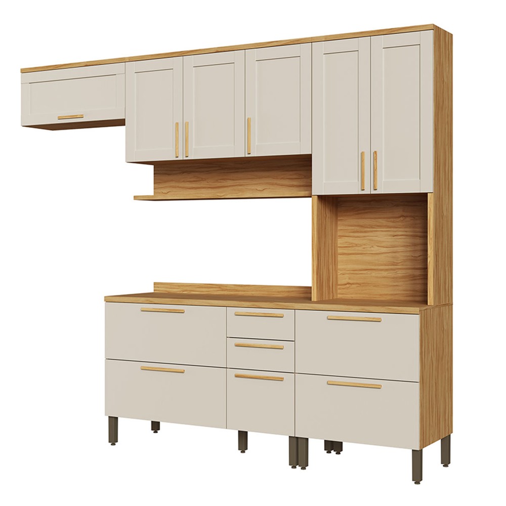 Armário de Cozinha Americana com Balcão e Tampo 11 Portas 2 Gavetas Texas 100% Mdf Amêndoa/Off White - Pnr Móveis