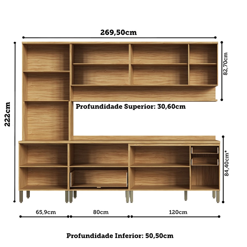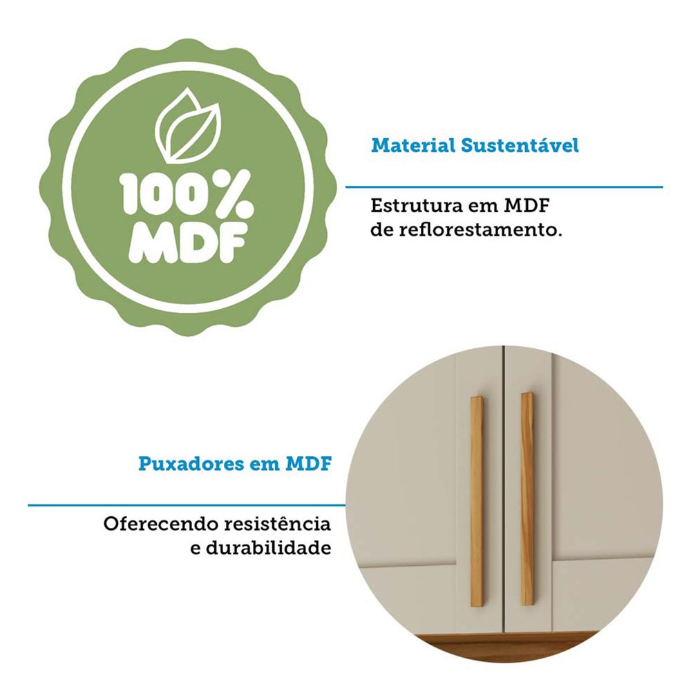 Observação - Objetos decorativos que aparecem nas imagens, não acompanham o produto. - Porta e Gaveta niveladas com moldura embutida. - Abertura da porta auxiliada por pistão à gás. - Moldura e Tampo em MDF 15mm, Laterais 12mm e Fundo em HDF 2,5mm. - Altura total com rodabanca 90,40cm. - Pés com altura de 17cm. - Medida do tampo: 80 x 47 x 1,5 (L x P x A - cm). - Possui marcação para auxiliar no corte para encaixe do cooktop. Cooktop não acompanha o produto.