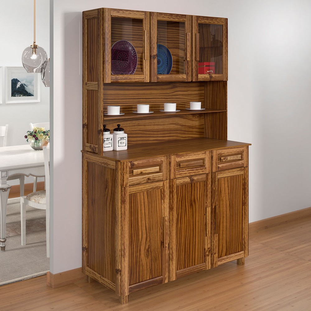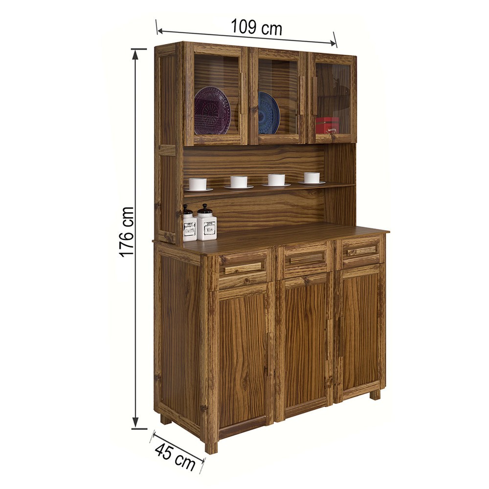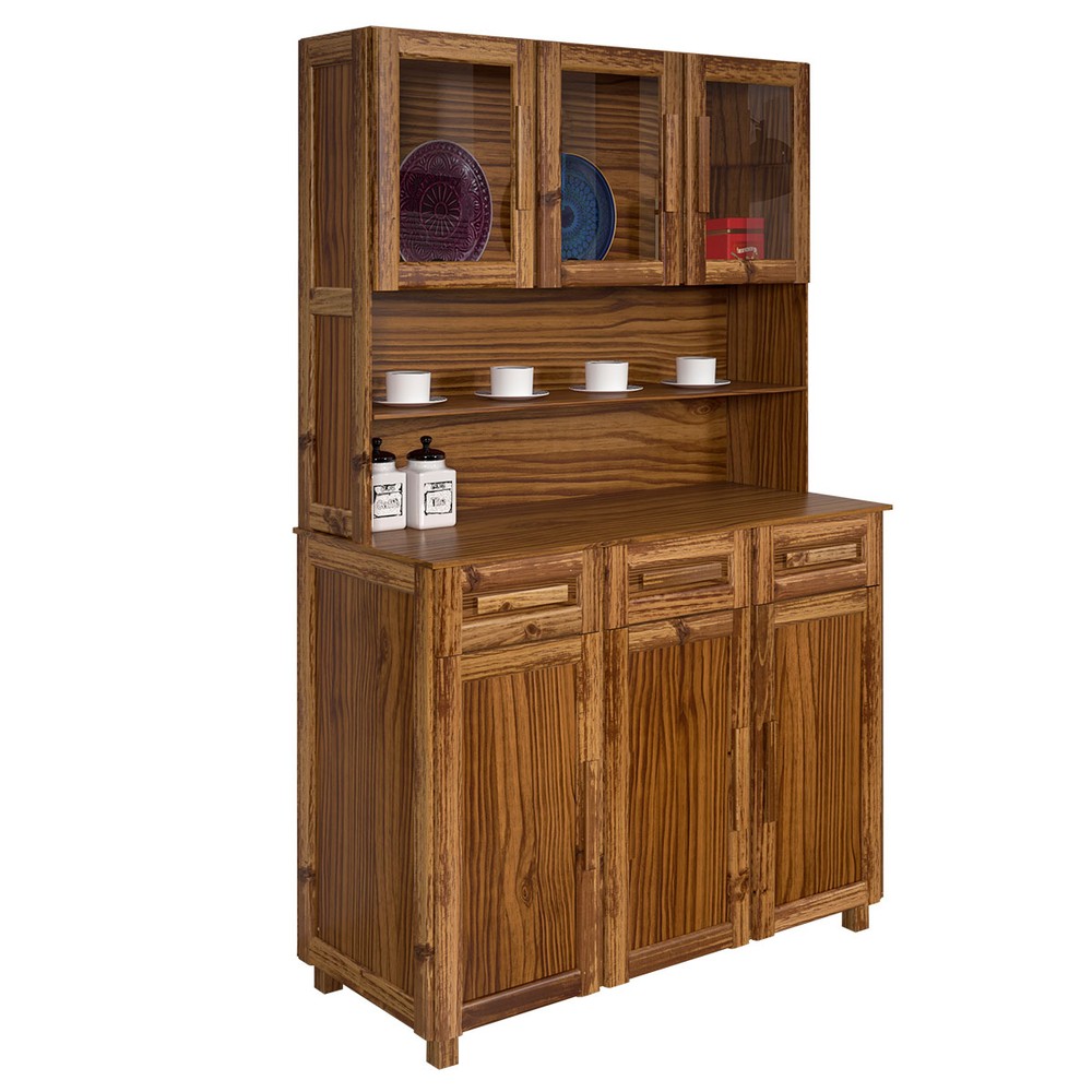 O(a) Armário de Cozinha Bahia 6 Portas 3 Gavetas com Vidro Ypê - Rodmóveis é produzido em Madeira Maciça e HDF na escala de brilho Fosco, e possui um grau de dificuldade de montagem: Médio.