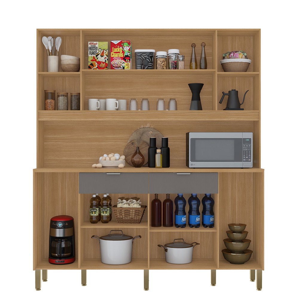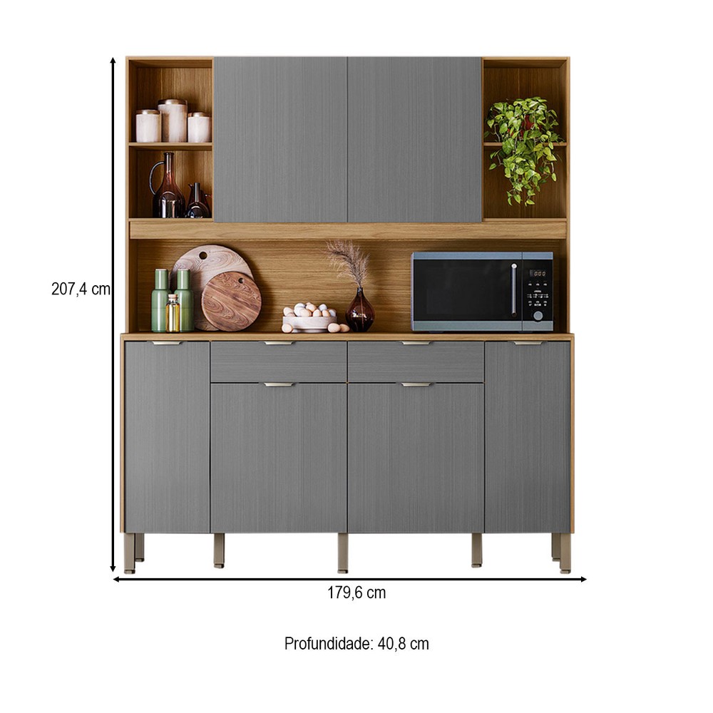 O(a) Armário de Cozinha Botanika 6 Portas 2 Gavetas Freijó/Gris - Kits Paraná é produzido em MDP na escala de brilho Brilho, e possui um grau de dificuldade de montagem: Médio.