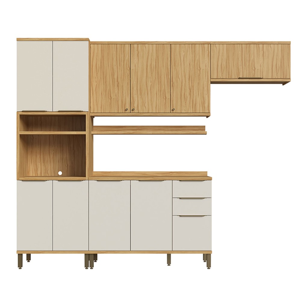 O(a) Armário de Cozinha com Balcão e Tampo 10 Portas 3 Gavetas Nice Fresado com Prateleira 100% Mdf Amêndoa/Off White - Pnr Móveis é produzido em 100% MDF na escala de brilho Semi-Brilho, e possui um grau de dificuldade de montagem: Médio.