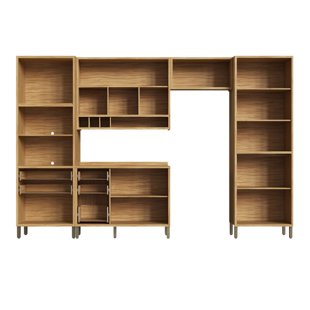 Armário de Cozinha com Balcão e Tampo 11 Portas 5 Gavetas Pérola 100% Mdf Vidro Reflecta Amêndoa/Branco - Pnr Móveis