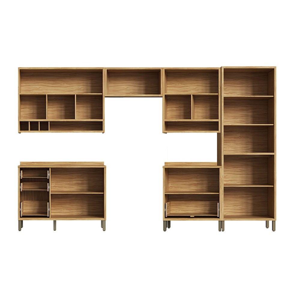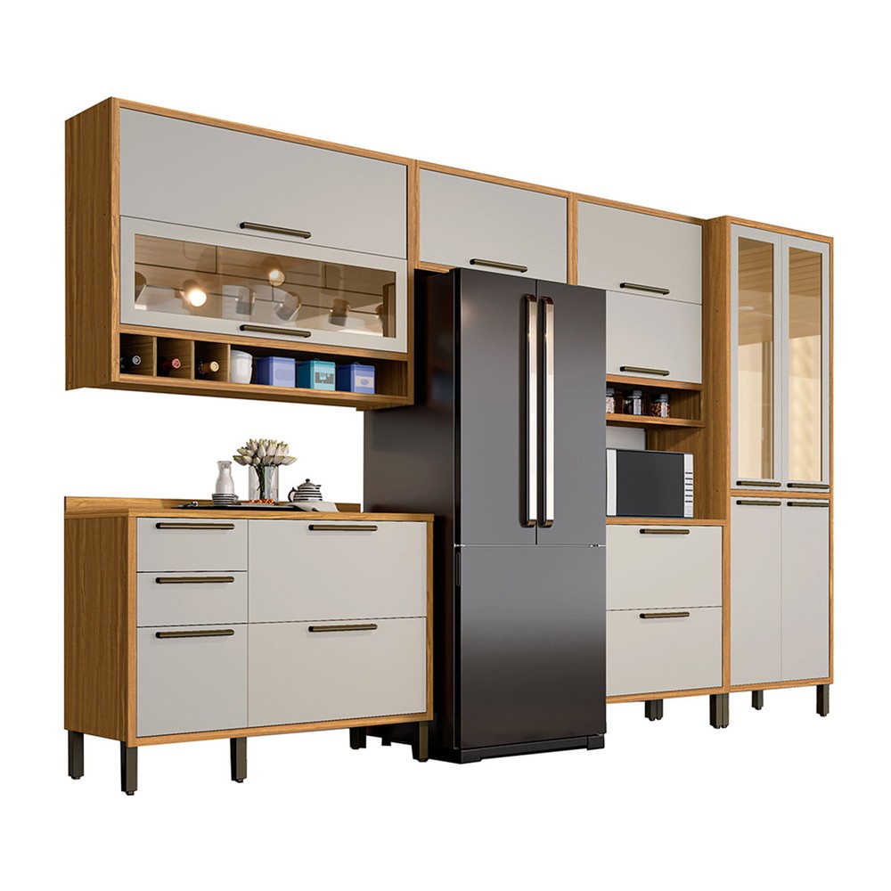 Armário de Cozinha com Balcão e Tampo 12 Portas 4 Gavetas Pérola 100% Mdf Vidro Reflecta Amêndoa/Off White - Pnr Móveis