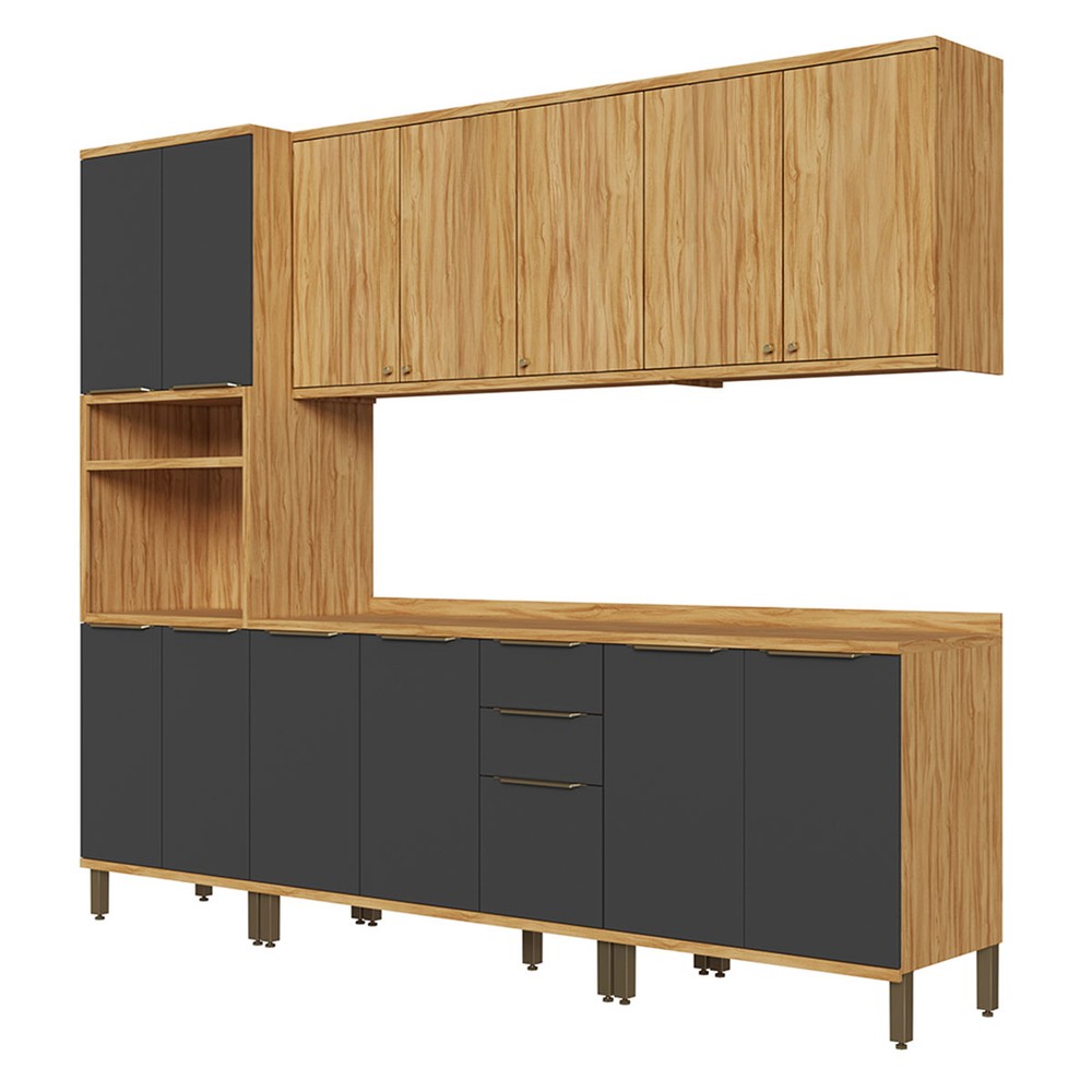O(a) Armário de Cozinha com Balcão e Tampo 13 Portas 3 Gavetas Nice 100% Mdf Amêndoa/Chumbo - Pnr Móveis é produzido em 100% MDF na escala de brilho Semi-Brilho, e possui um grau de dificuldade de montagem: Médio.