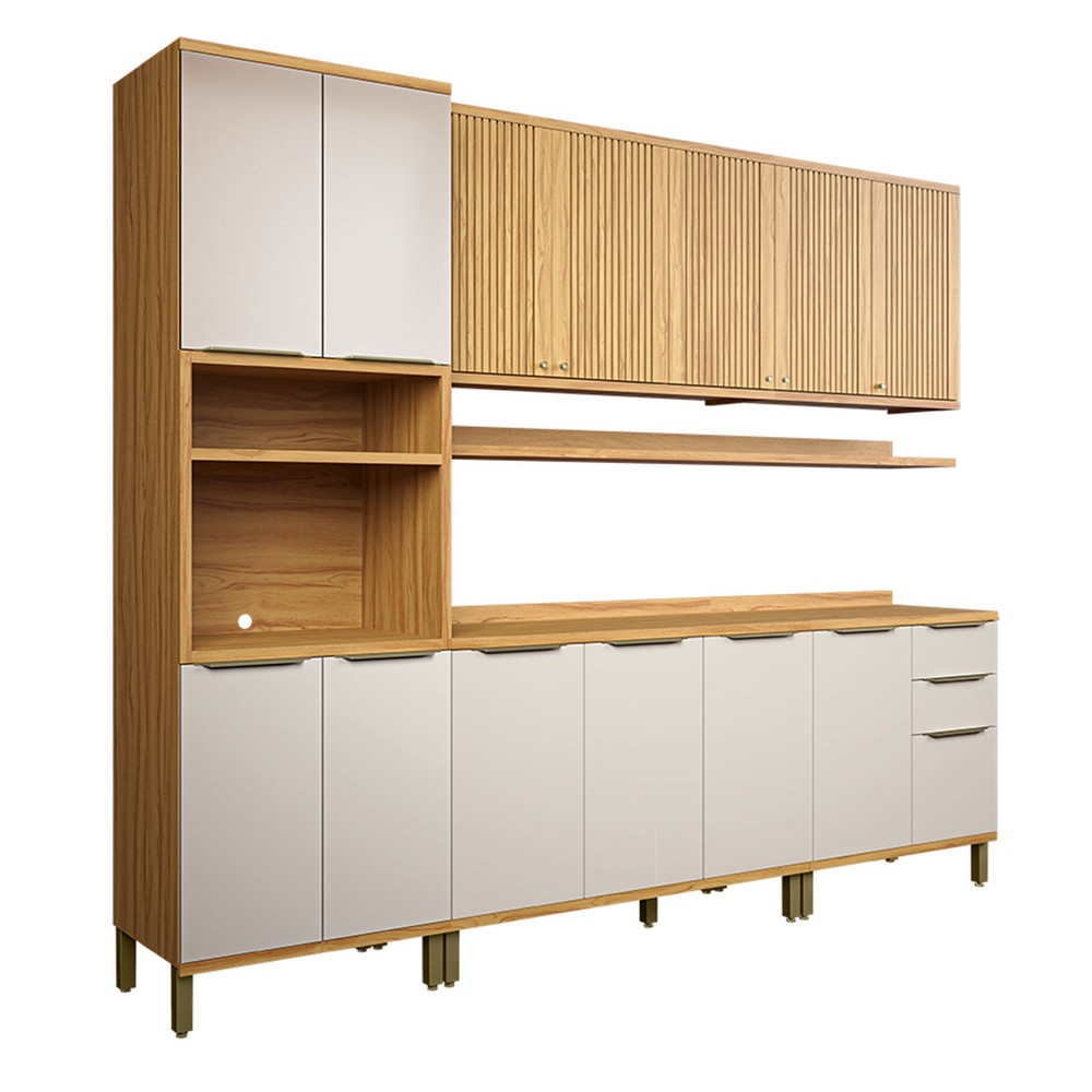 O(a) Armário de Cozinha com Balcão e Tampo 13 Portas 3 Gavetas Nice Fresado com Prateleira 100% Mdf Amêndoa/Off White - Pnr Móveis é produzido em 100% MDF na escala de brilho Semi-Brilho, e possui um grau de dificuldade de montagem: Médio.