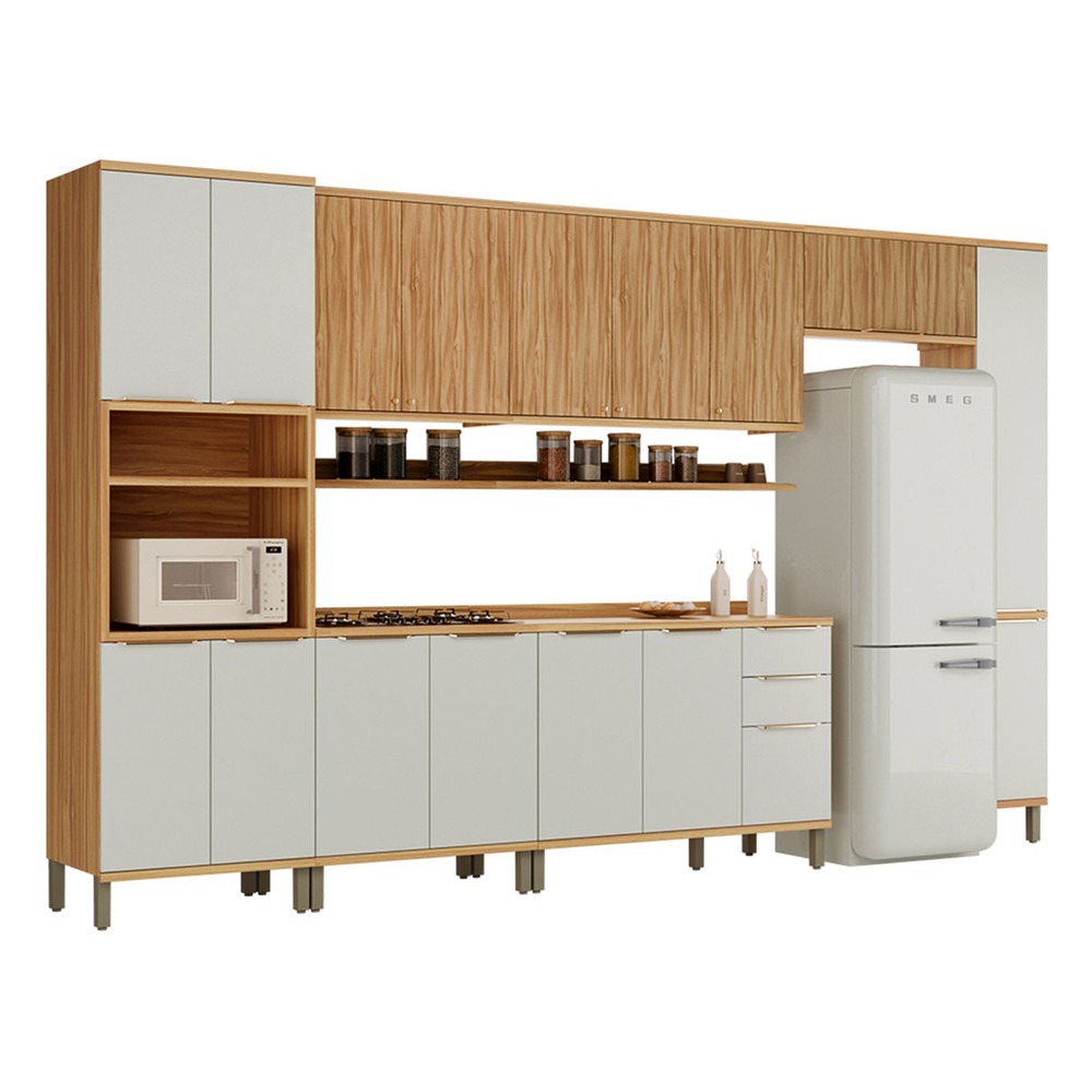 O(a) Armário de Cozinha com Balcão e Tampo 16 Portas 3 Gavetas Nice 100% Mdf Amêndoa/Off White - Pnr Móveis é produzido em 100% MDF na escala de brilho Semi-Brilho, e possui um grau de dificuldade de montagem: Médio.