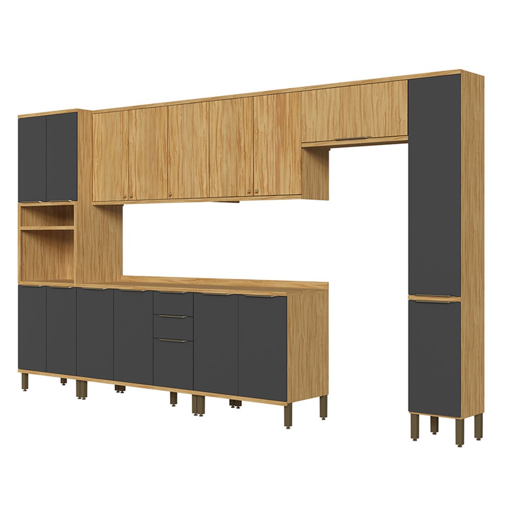O(a) Armário de Cozinha com Balcão e Tampo 16 Portas 3 Gavetas Nice Plus 100% Mdf Amêndoa/Chumbo - Pnr Móveis é produzido em 100% MDF na escala de brilho Semi-Brilho, e possui um grau de dificuldade de montagem: Médio.