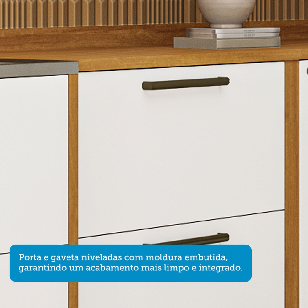 O(a) Balcão de Cozinha Syrah 1 Porta 4 Gavetas 100% Mdf Amêndoa/Branco - Rio Doce é produzido em 100% MDF na escala de brilho Semi-Brilho, e possui um grau de dificuldade de montagem: Médio.