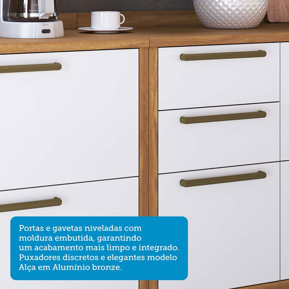 Armário de Cozinha com Balcão e Tampo 6 Portas 4 Gavetas Pérola 100% Mdf Vidro Reflecta Amêndoa/Branco - Pnr Móveis