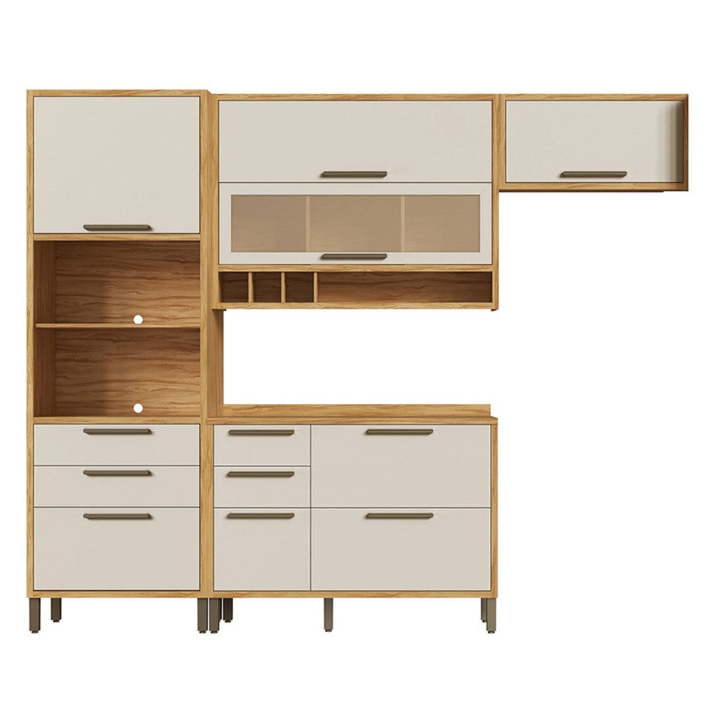 Armário de Cozinha com Balcão e Tampo 7 Portas 5 Gavetas Pérola 100% Mdf Vidro Reflecta Amêndoa/Off White - Pnr Móveis