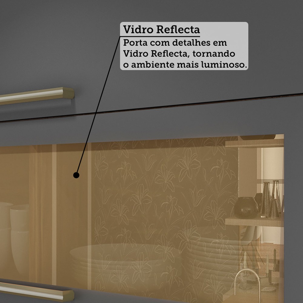 Armário de Cozinha com Balcão e Tampo 8 Portas 4 Gavetas Pérola 100% Mdf Vidro Reflecta Amêndoa/Chumbo - Pnr Móveis