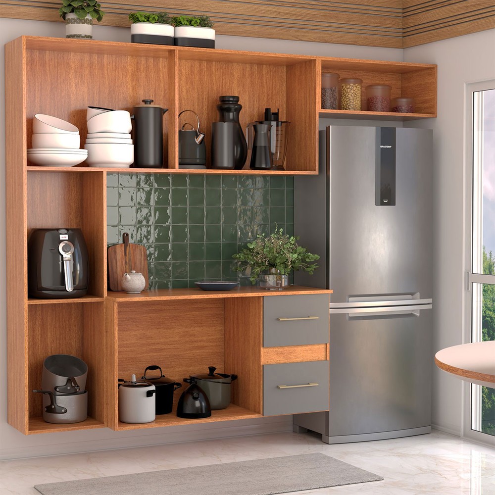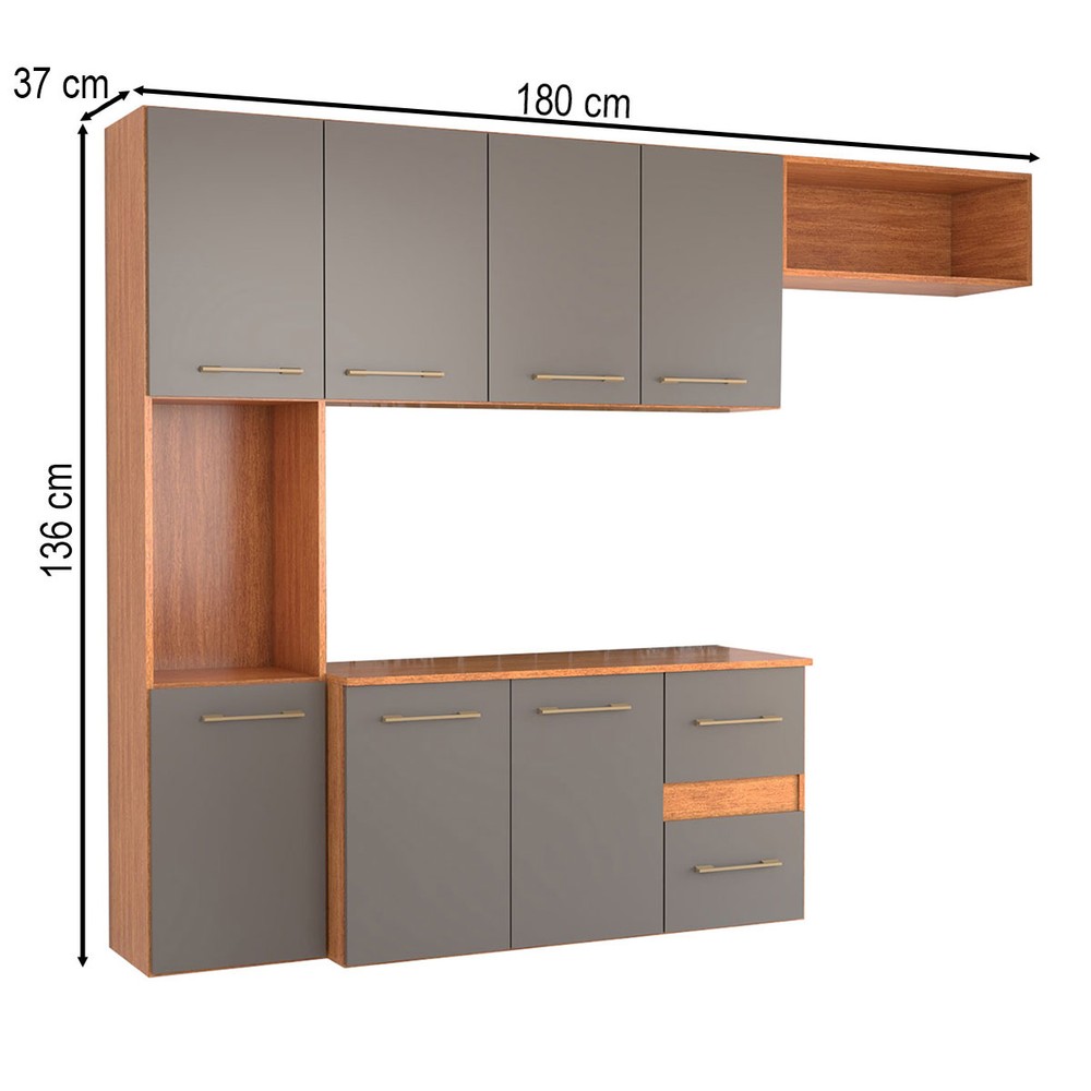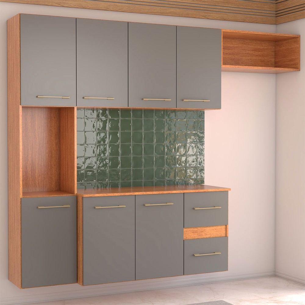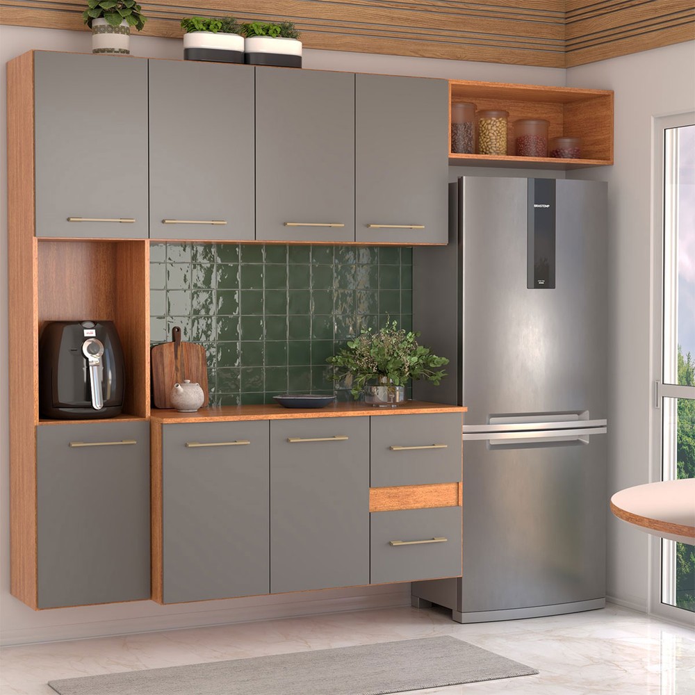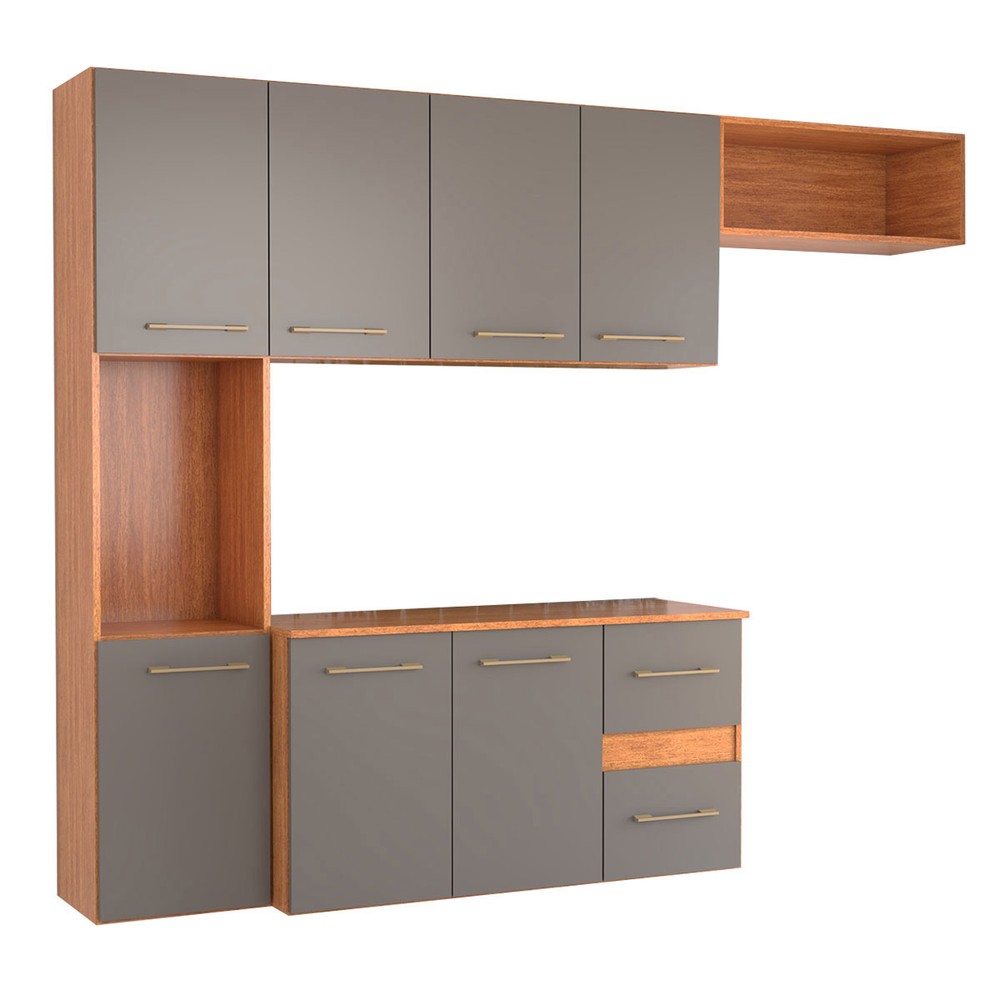 O(a) Armário de Cozinha com Balcão Maitê 7 Portas 2 Gaveta Cinamomo/Grafite - Panorama Móveis é produzido em MDP na escala de brilho Brilho e Semi-Brilho, e possui um grau de dificuldade de montagem: Médio.