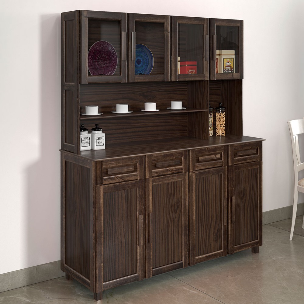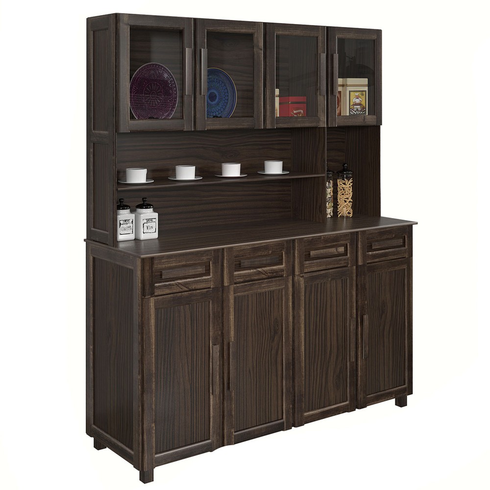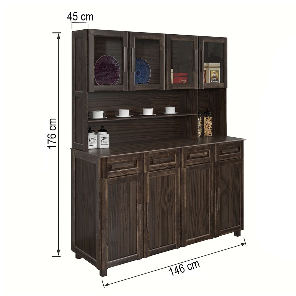 O(a) Armário de Cozinha Maranhão 8 Portas 4 Gavetas com Vidro Imbuia Natural - Rodmóveis é produzido em Pinus e HDF na escala de brilho Semi-Brilho, e possui um grau de dificuldade de montagem: Médio.