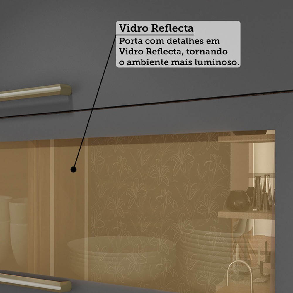 Armário de Cozinha Modulada Canto com Balcão e Tampo 14 Portas 4 Gavetas ágata 100% Mdf Vidro Reflecta Amêndoa/Chumbo - Pnr Móveis