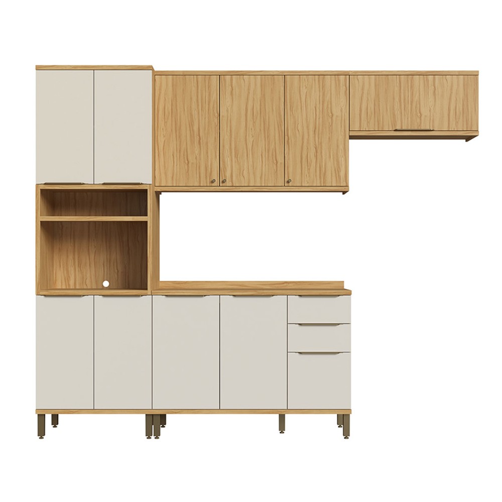 O(a) Armário de Cozinha Modulada com Balcão e Tampo 10 Portas 3 Gavetas Nice 100% Mdf Amêndoa/Off White - Pnr Móveis é produzido em 100% MDF na escala de brilho Semi-Brilho, e possui um grau de dificuldade de montagem: Médio.