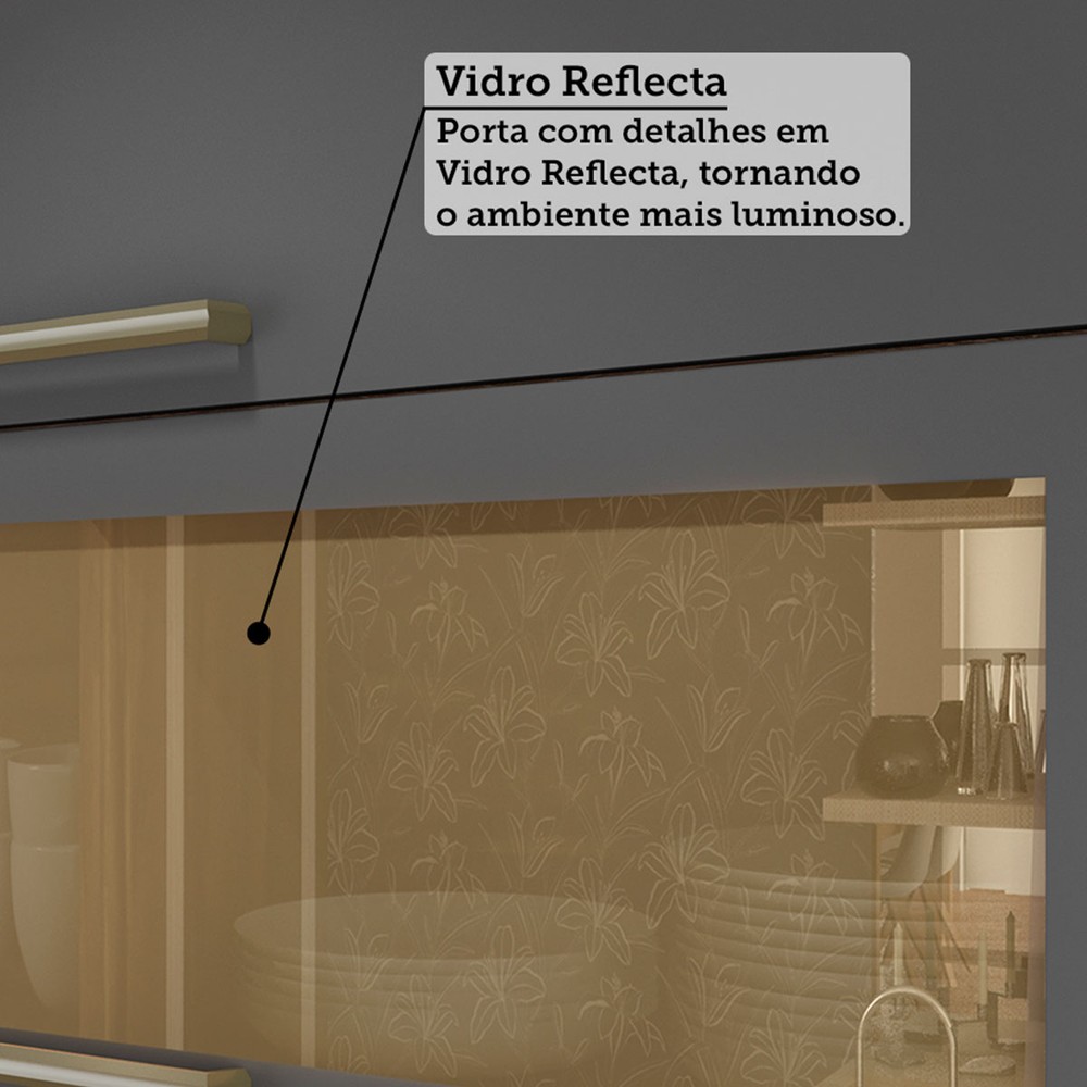 Armário de Cozinha Modulada com Balcão e Tampo 11 Portas 5 Gavetas ágata 100% Mdf Vidro Reflecta Amêndoa/Chumbo - Pnr Móveis