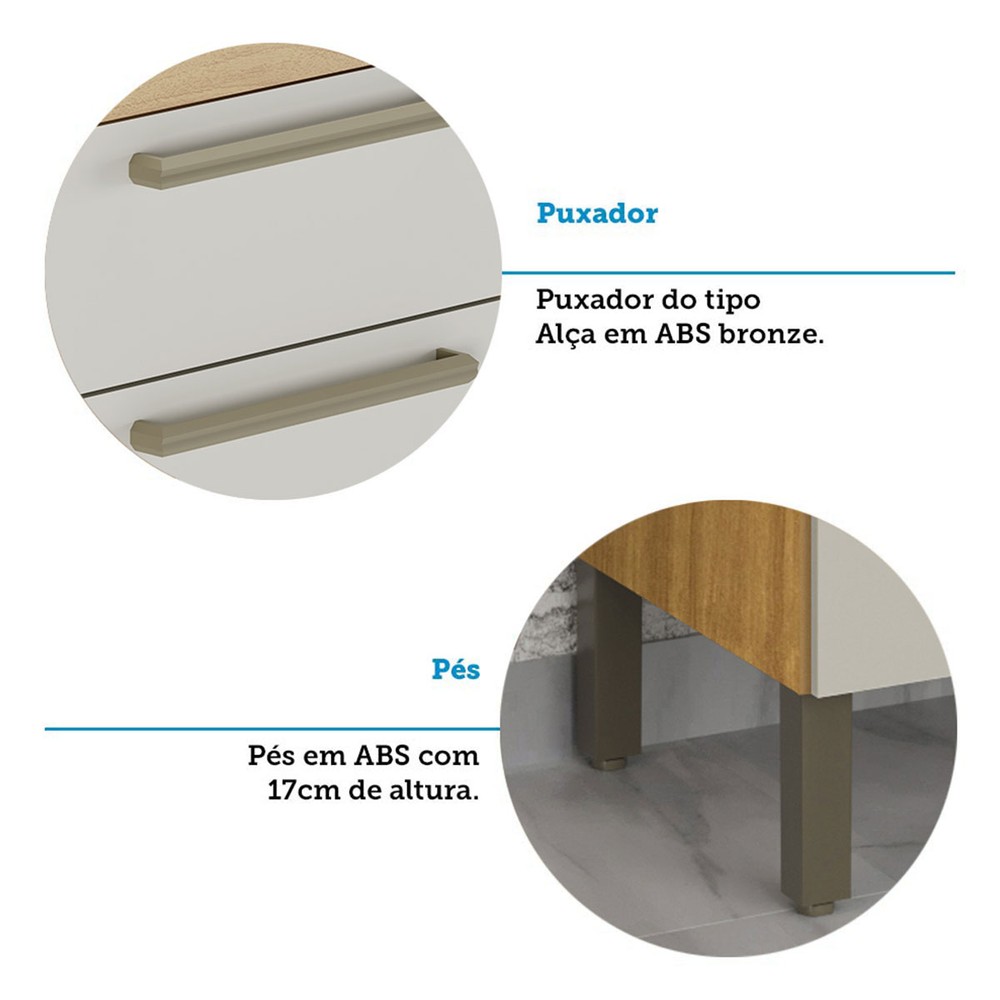 Armário de Cozinha Modulada com Balcão e Tampo 12 Portas 2 Gavetas Xangai 100% Mdf com Vidro Reflecta Amêndoa/Off White - Pnr Móveis
