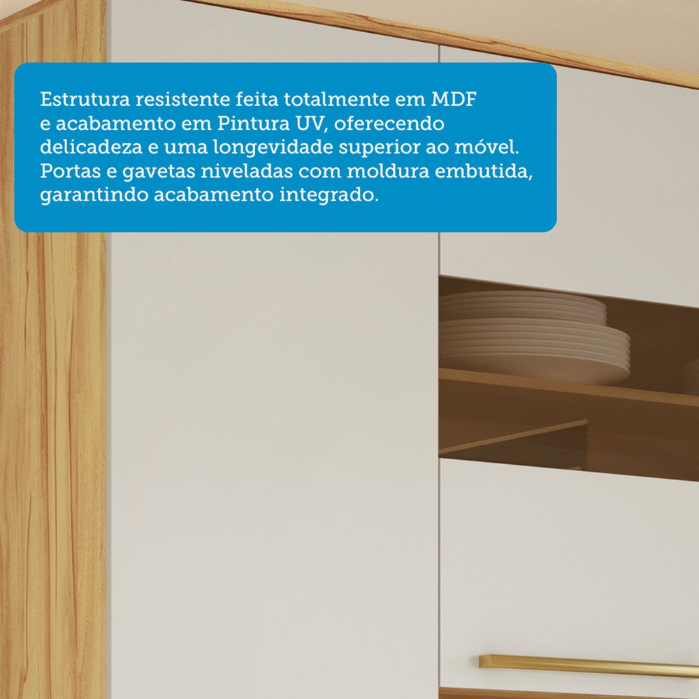 Armário de Cozinha Modulada com Balcão e Tampo 13 Portas 2 Gavetas Xangai Slim 100% Mdf com Vidro Reflecta Amêndoa/Off White - Pnr Móveis