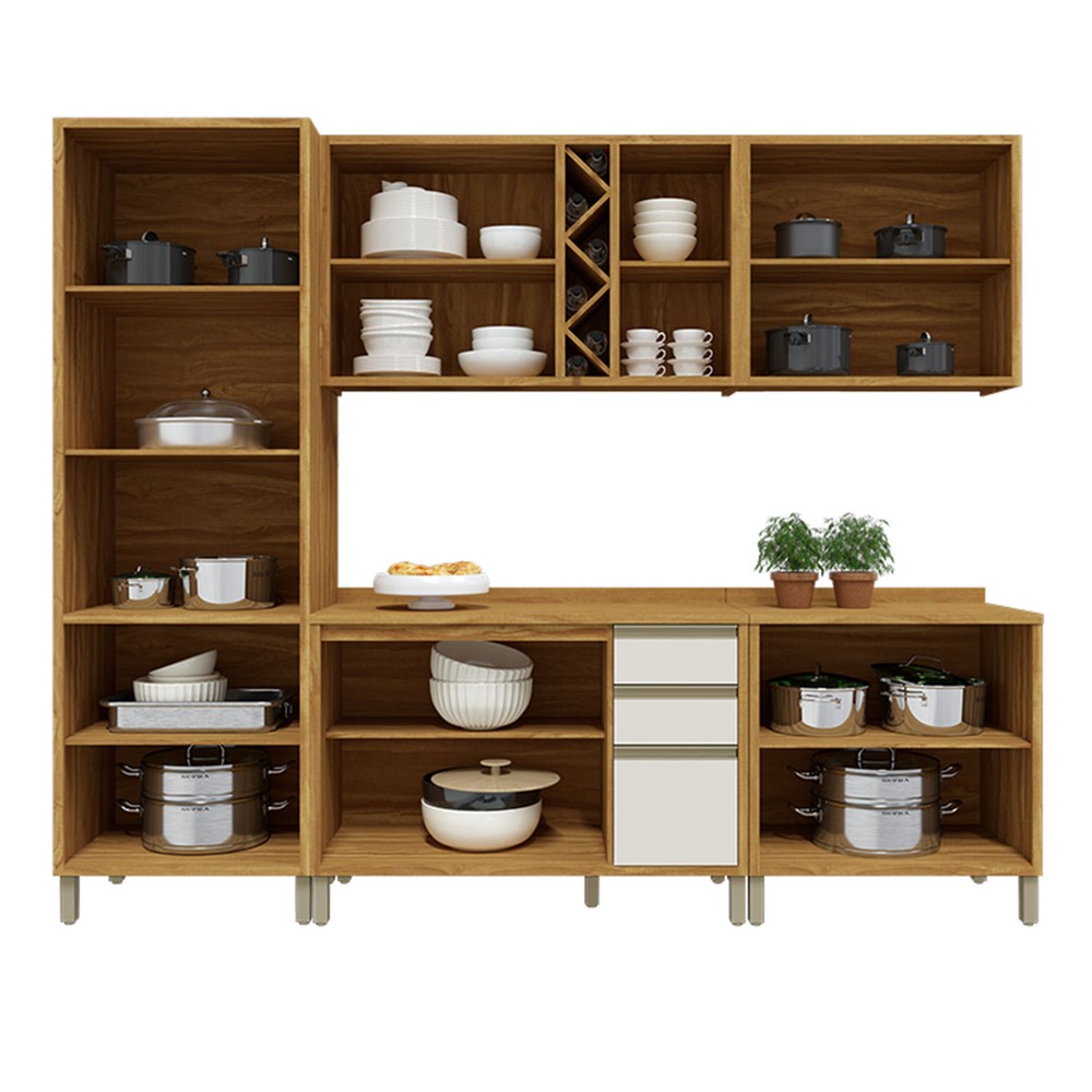 O(a) Armário de Cozinha Modulada com Balcão e Tampo 13 Portas 3 Gavetas Pérola 100% Mdf Vidro Reflecta Amêndoa/Off White - Pnr Móveis é produzido em 100% MDF na escala de brilho Semi-Brilho, e possui um grau de dificuldade de montagem: Médio.