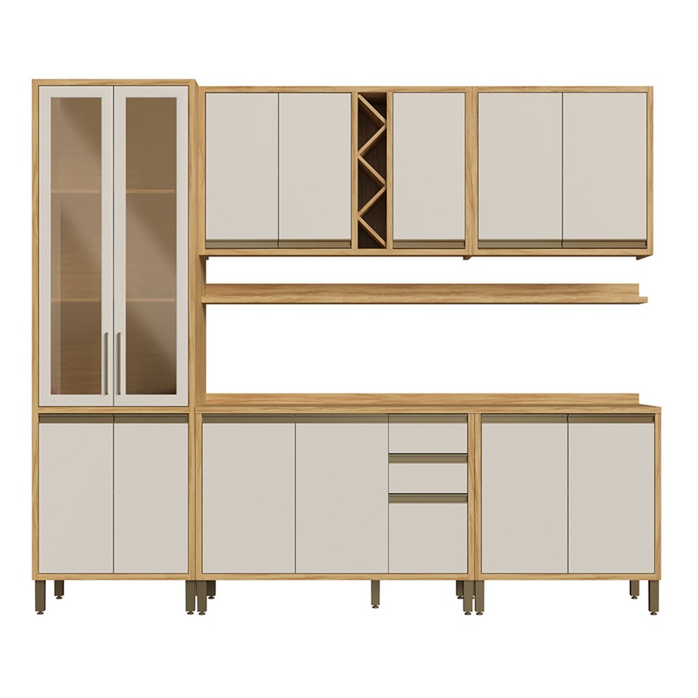 O(a) Armário de Cozinha Modulada com Balcão e Tampo 13 Portas 3 Gavetas Pérola Plus com Prateleiras 100% Mdf Vidro Reflecta Amêndoa/Off White - Pnr Móveis é produzido em 100% MDF na escala de brilho Semi-Brilho, e possui um grau de dificuldade de montagem: Médio.