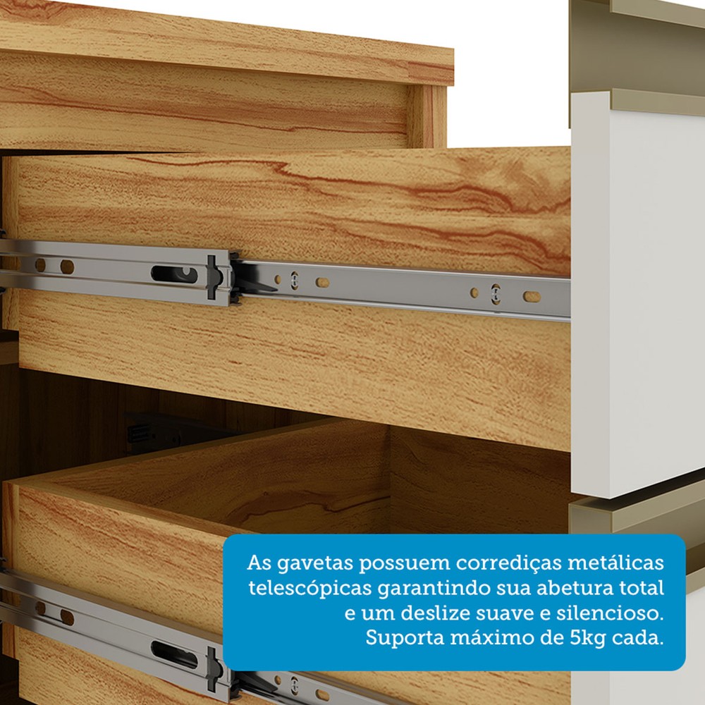 O(a) Armário de Cozinha Modulada com Balcão e Tampo 13 Portas 3 Gavetas Pérola Premium 100% Mdf Vidro Reflecta Amêndoa/Off White - Pnr Móveis é produzido em 100% MDF na escala de brilho Semi-Brilho, e possui um grau de dificuldade de montagem: Médio.