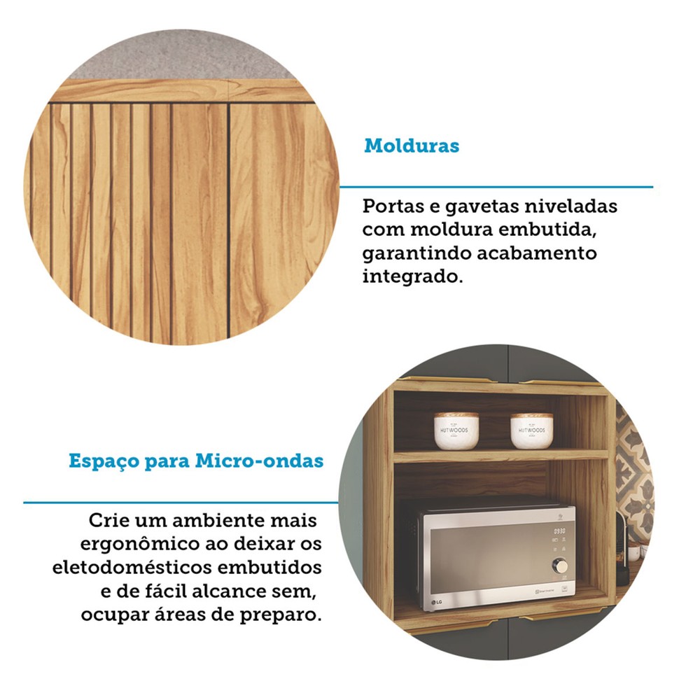 O(a) Armário de Cozinha Modulada com Balcão e Tampo 14 Portas 3 Gavetas Nice Fresado 100% Mdf Amêndoa/Chumbo - Pnr Móveis é produzido em 100% MDF na escala de brilho Semi-Brilho, e possui um grau de dificuldade de montagem: Médio.