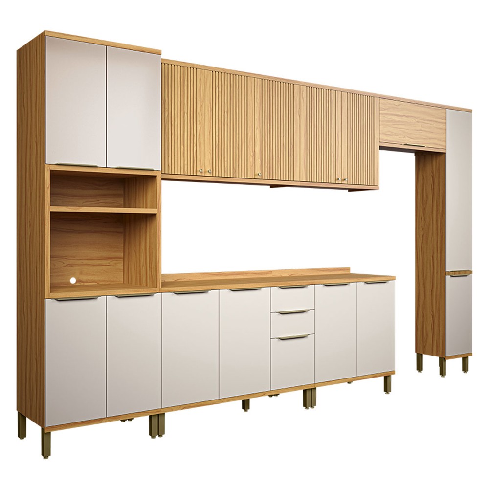 O(a) Armário de Cozinha Modulada com Balcão e Tampo 16 Portas 3 Gavetas Nice Fresado 100% Mdf Amêndoa/Off White - Pnr Móveis é produzido em 100% MDF na escala de brilho Semi-Brilho, e possui um grau de dificuldade de montagem: Médio.