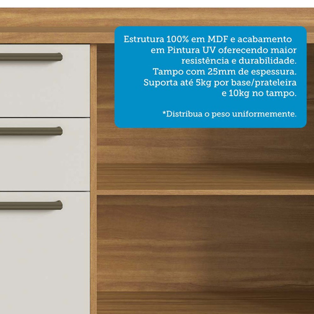 Armário de Cozinha Modulada com Balcão e Tampo 4 Portas 3 Gavetas ágata 100% Mdf Vidro Reflecta Amêndoa/Off White - Pnr Móveis
