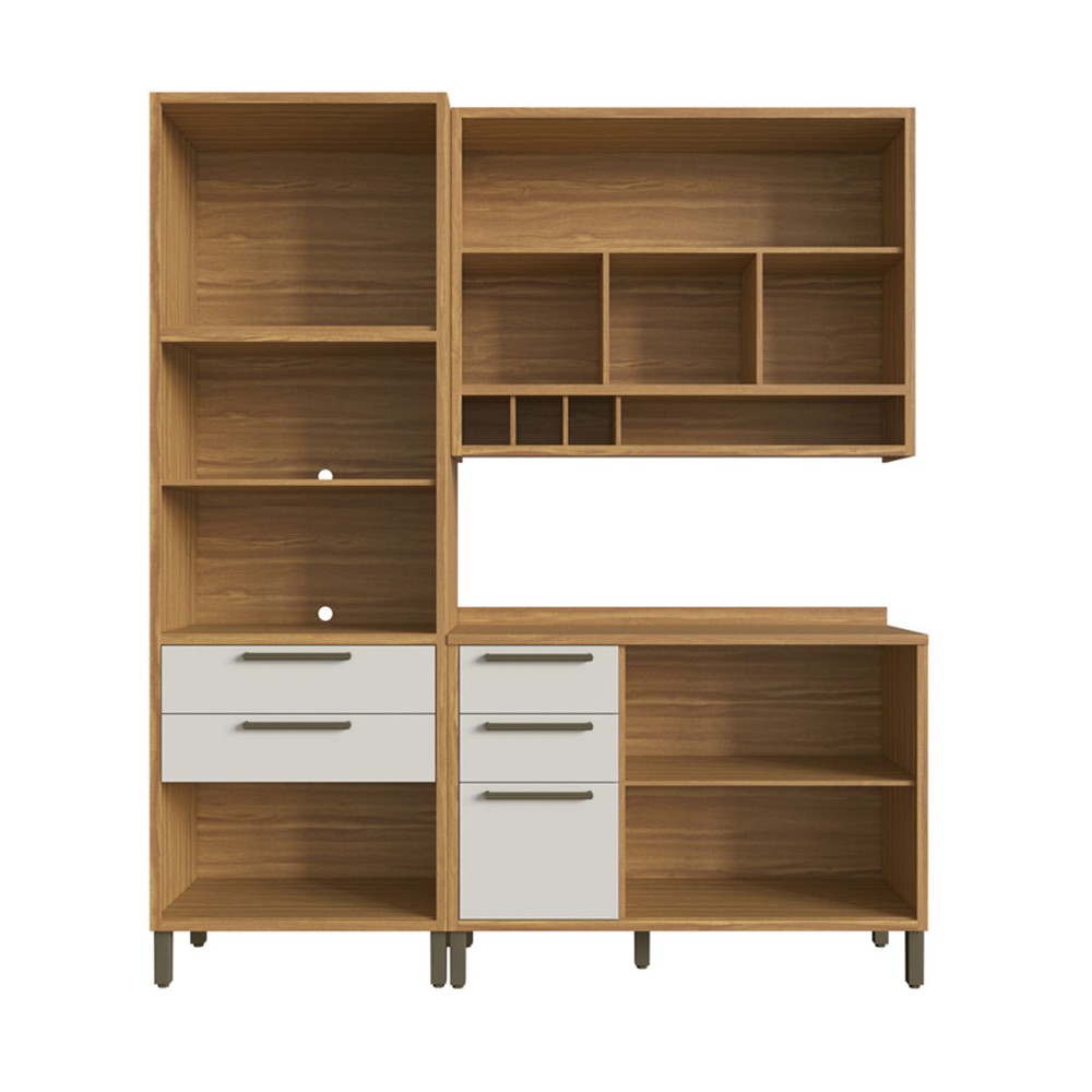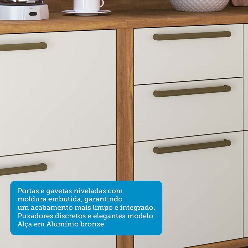 Armário de Cozinha Modulada com Balcão e Tampo 6 Portas 5 Gavetas ágata 100% Mdf Vidro Reflecta Amêndoa/Off White - Pnr Móveis