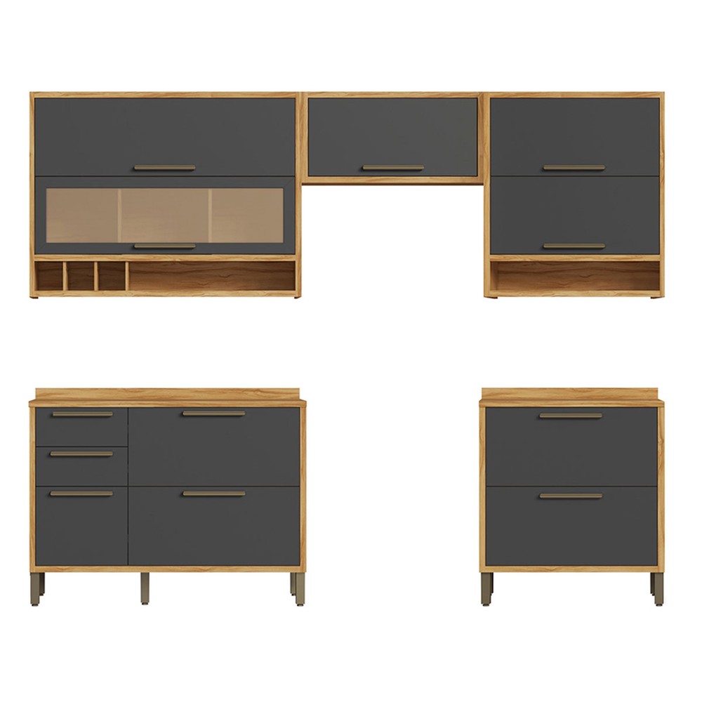 Armário de Cozinha Modulada com Balcão e Tampo 8 Portas 4 Gavetas ágata 100% Mdf Vidro Reflecta Amêndoa/Chumbo - Pnr Móveis