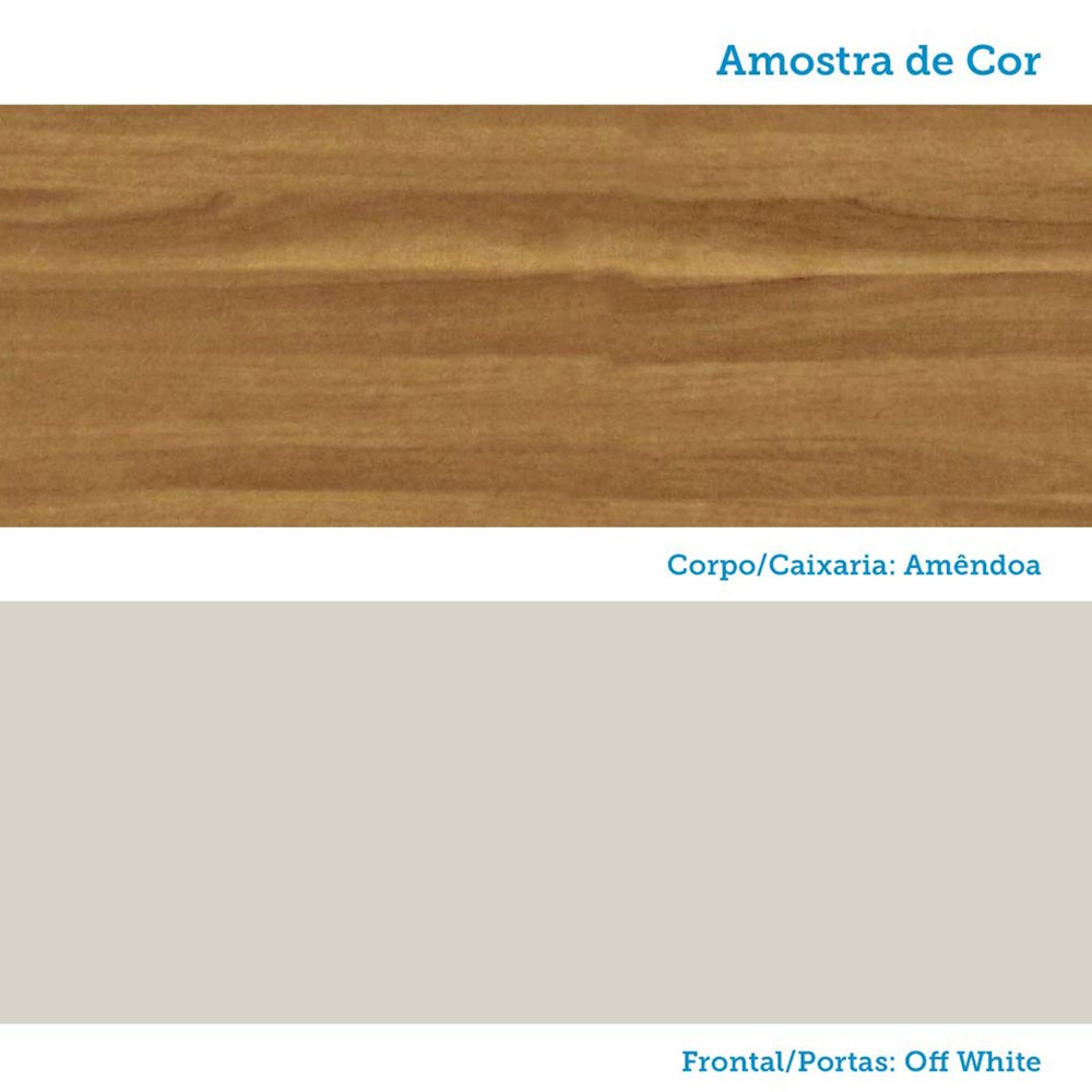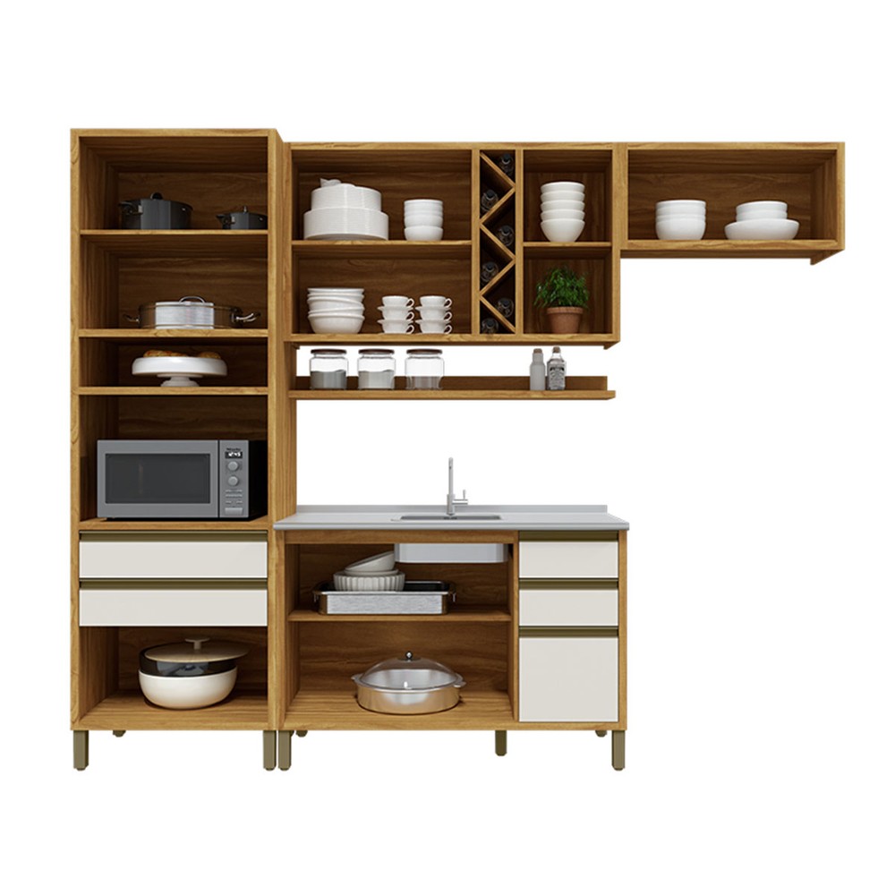 Armário de Cozinha Modulada com Balcão para Pia 9 Portas 5 Gavetas Pérola 100% Mdf Vidro Reflecta Amêndoa/Off White - Pnr Móveis